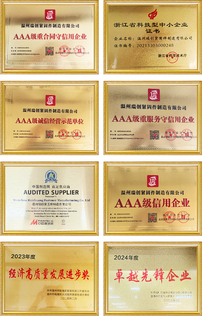 瑞創緊固件,始于2002年,是一家專注于緊固件生產銷售的工廠,擁有100多臺生產設備,生產到銷售一站式服務。廠房面積7000平,日生產可滿足廣大客戶的需求生產和銷售國標、英、美、德、日制標準及非標異形的冷鐓螺絲(桿類冷成形件)、螺母(孔類冷成形件)、車制件、沖制件及鋅合金壓鑄件等產品。